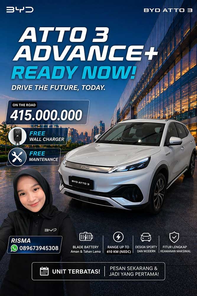 Untuk mendapatkan mobil listrik BYD, silahkan hubungi sales consultant kami melalui nomor yang tertera di website ini. Dapatkan segera mobil listrik impian yang ramah lingkungan dan lebih ekonomis.